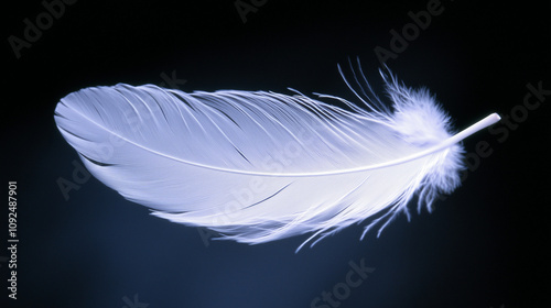 © Good Co Vision, Obraz premium White feather on a dark background with soft lighting