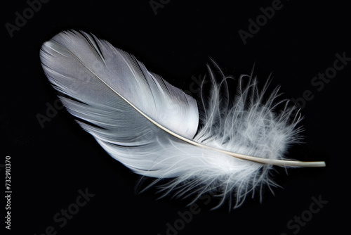 Obraz premium White Feather On Black Surface For Background Created Using Artificial...