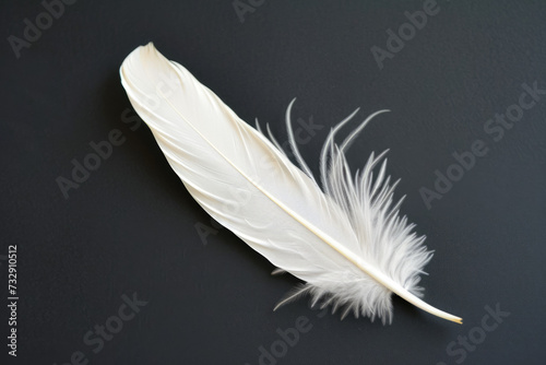 Obraz premium White Feather On Black Surface For Background Created Using Artificial...