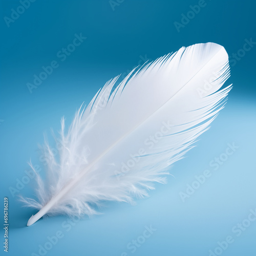 Obraz premium white feather on blue background