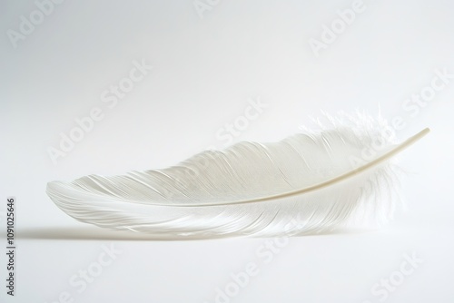 Obraz premium White feather on light background, soft texture, delicate curve