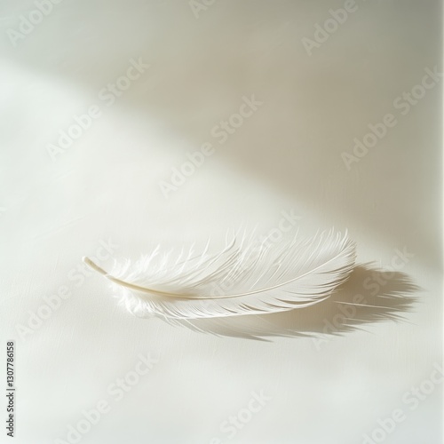 Fototapeta premium White Feather on Soft White Background with Gentle Lighting