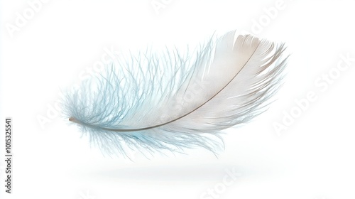 © Anna, Obraz premium White feather on white background with reflective feather