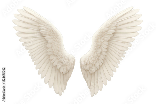 © PNG Kingdom , Obraz premium White feathered wings spreading wide, isolated against transparent backdrop, embodying celestial ethereal essence