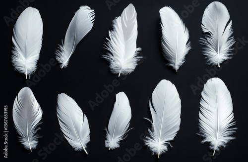 Obraz premium White Feathers Arranged on Black Background