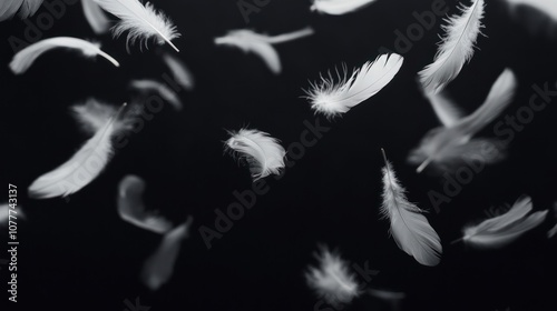 Obraz premium White Feathers Falling on Black Background