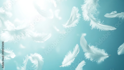 © MySamLobatobrock, Fototapeta premium White Feathers Floating in Teal Light