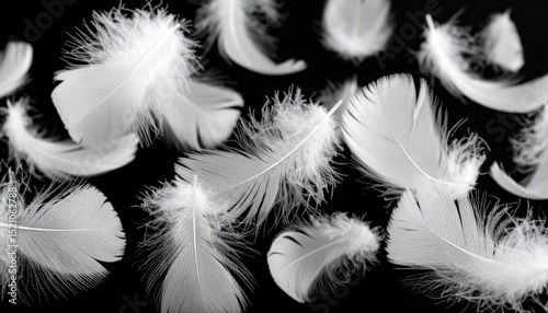 © Vader Stocker, Obraz premium White Feathers Floating on Black Background