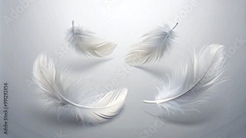 © Uncle-Ice, Obraz premium White feathers gently floating on a floor