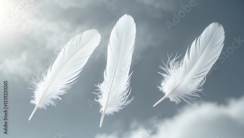 © NFTNexus, Obraz premium White Feathers Gliding Through the Sky. Fluffy Downy, Soaring Feathers. Softness of Feathers Drifting.