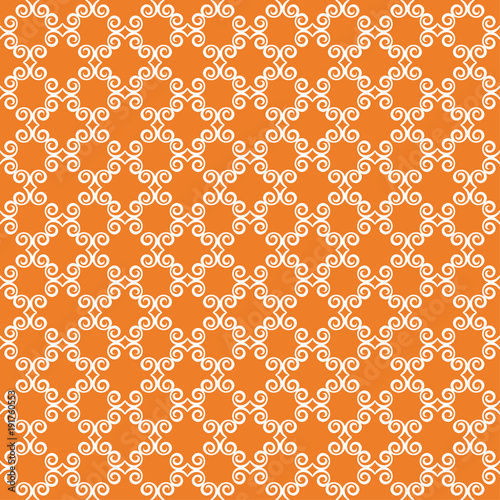 Fototapeta premium White floral seamless pattern on orange background