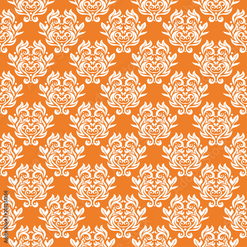 Fototapeta premium White floral seamless pattern on orange background