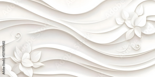© enter, Obraz premium White Floral Waves: Abstract Art Design