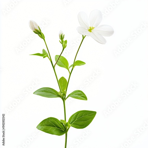 Fototapeta premium White Flower Blossom with Green Leaves on White Background