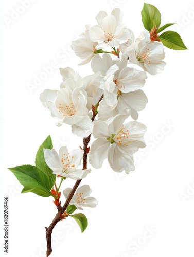 © Johannes, Fototapeta premium White flower branch with delicate blooms and a natural curve isolated on a white background