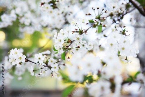 © alexkich, Fototapeta premium White flower on the tree. Apple and cherry blossoms. Spring flowering.