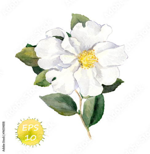 © zzorik, Fototapeta premium White flower. Watercolor botanical illustration