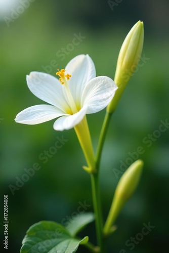 © Wachiraporn, Fototapeta premium White flower with five petals on a stem of Pyrus sp, common pear, blossoms, plant