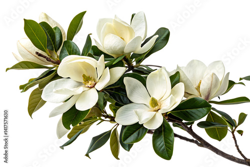 © PNG King, Obraz premium White flowered magnolia branch on a clear background