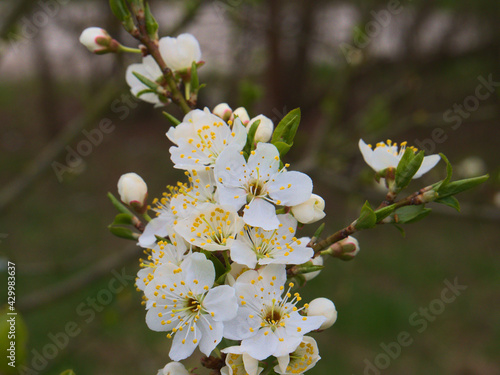 Obraz premium white flowers and buds on a fruit tree
