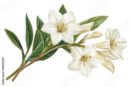 © Aashutosh Pandit, Fototapeta premium white flowers and green leaves on a stem