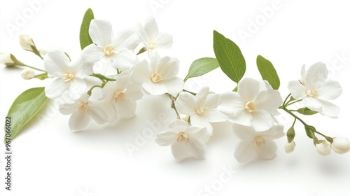 © Rere_Art151, Fototapeta premium White Flowers and Green Leaves on a White Background