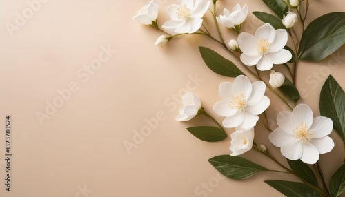 Obraz premium White Flowers Beige Matte. Subtle, calm floral on neutral beige. Serene,...