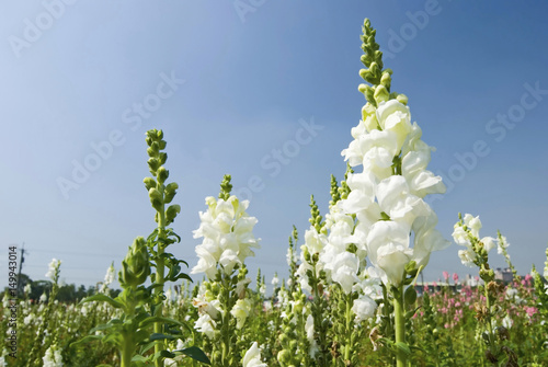 Obraz premium "white flowers in the field under blue sky, sunny day, Snapdragon"
