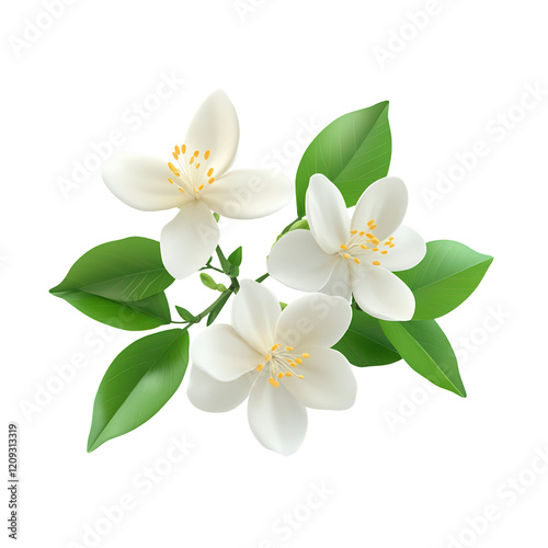 © xoxolove, Obraz premium white flowers isolated on transparent background, frangipani flower, jasmine flowers, 3d style
