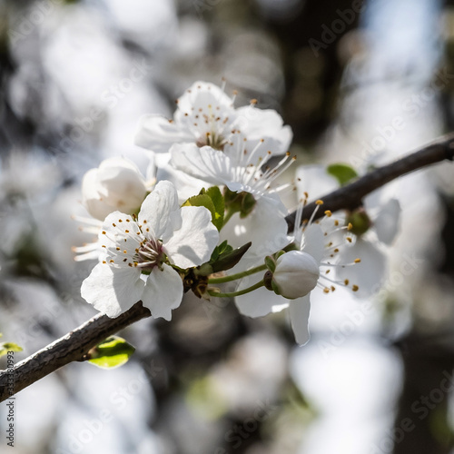 Fototapeta premium White flowers of a cherry tree on a blurred background