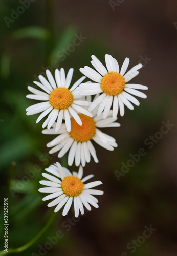 Fototapeta premium White flowers of daisies on black background. Flowering Chamomile flowers