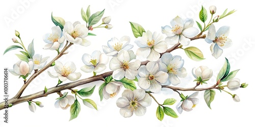 © Sayfar, Fototapeta premium White flowers on a branch isolated on a white background watercolor Macro