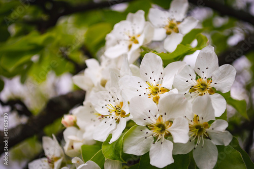 © Eugene B-sov, Fototapeta premium White flowers on a branch of tree Macro photo of spring