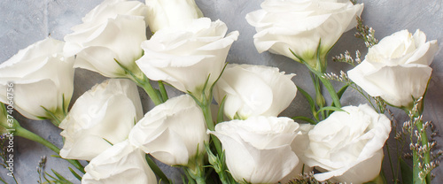 Fototapeta premium White flowers on a grey background top view