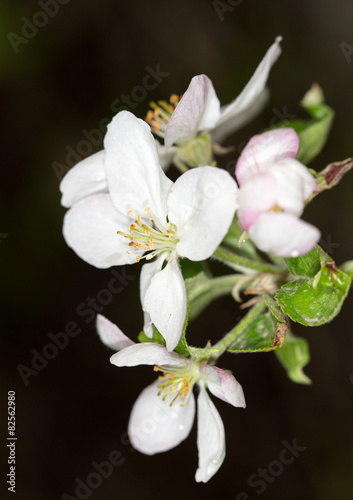 © schankz, Obraz premium white flowers on a tree on a black background