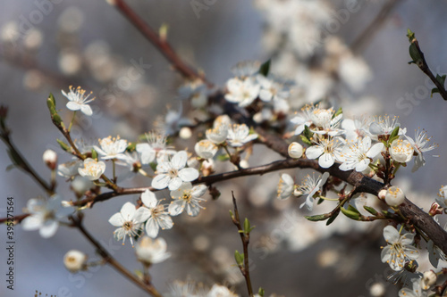 © Olha, Obraz premium White flowers on the trees. Lots of spring blooms.