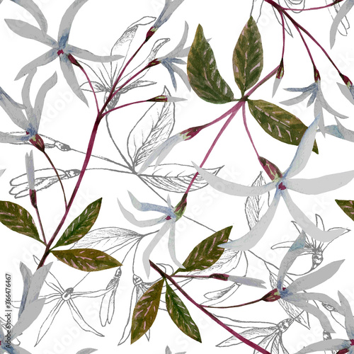 © Elena, Fototapeta premium White flowers seamless watercolor pattern