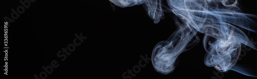 © LIGHTFIELD STUDIOS, Fototapeta premium white flowing smoke cloud on black background with copy space, panoramic shot
