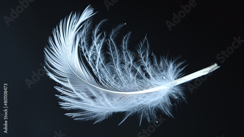 Naklejka premium White fluffy bird feather on a black background close-up