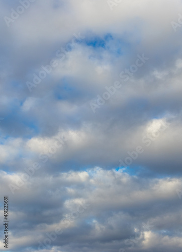 Fototapeta premium White fluffy clouds densely cover the blue sky