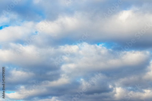 Fototapeta premium White fluffy clouds densely cover the blue sky