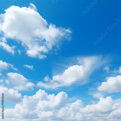 Fototapeta premium White fluffy clouds drift across a vibrant blue sky