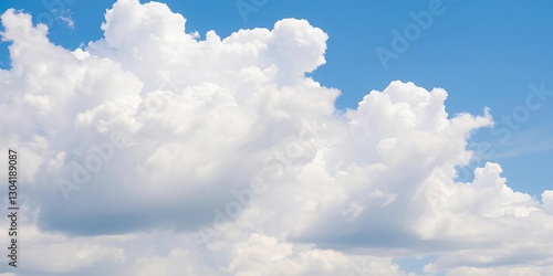 Obraz premium White fluffy clouds floating in a clear blue sky on a sunny summer day, peaceful, blue sky