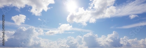 Obraz premium White fluffy clouds floating in a clear blue summer sky, creating a serene...