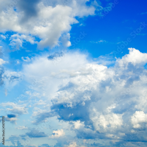 © Serghei V, Obraz premium White fluffy clouds in the blue sky.