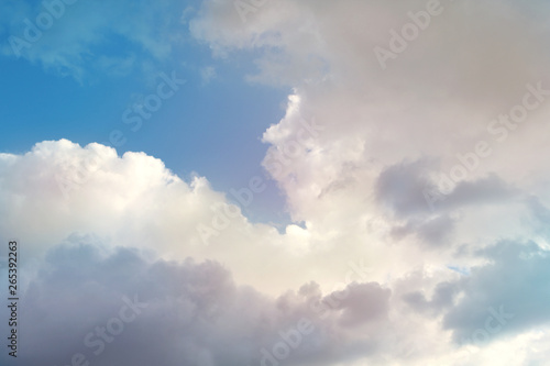 Fototapeta premium white, fluffy, cumulus clouds on a blue sky background, copy space