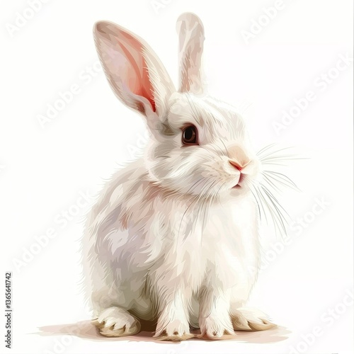 © nikolettamuhari, Obraz premium White fluffy Easter bunny sitting on white background