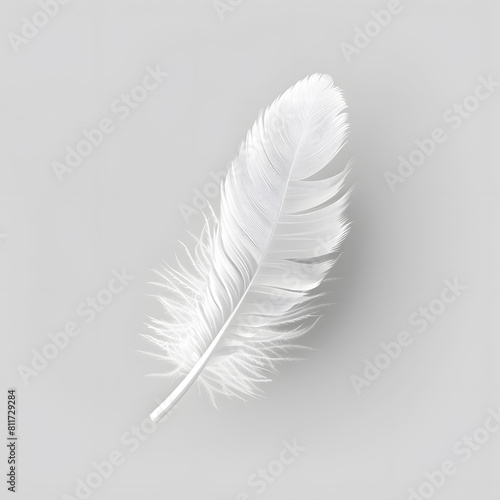 Obraz premium White fluffy feather isolated on light grey background