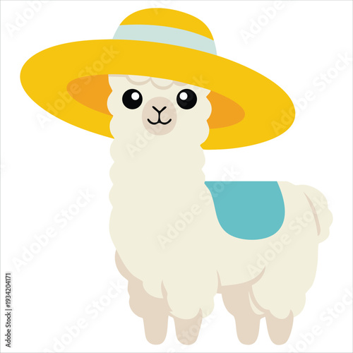 Fototapeta premium White fluffy llama in a hat vector illustration on white background