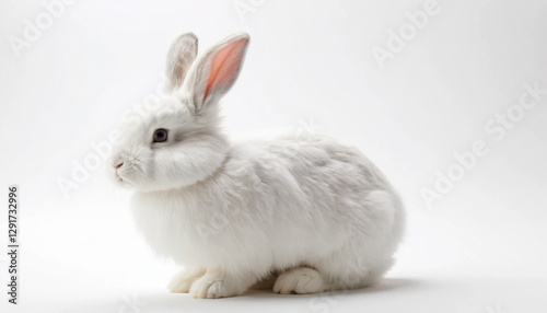 © Aleksandra, Obraz premium White fluffy rabbit on white background